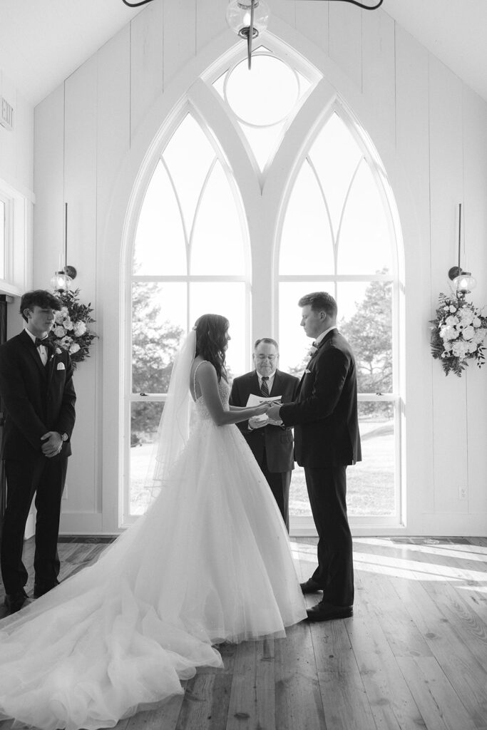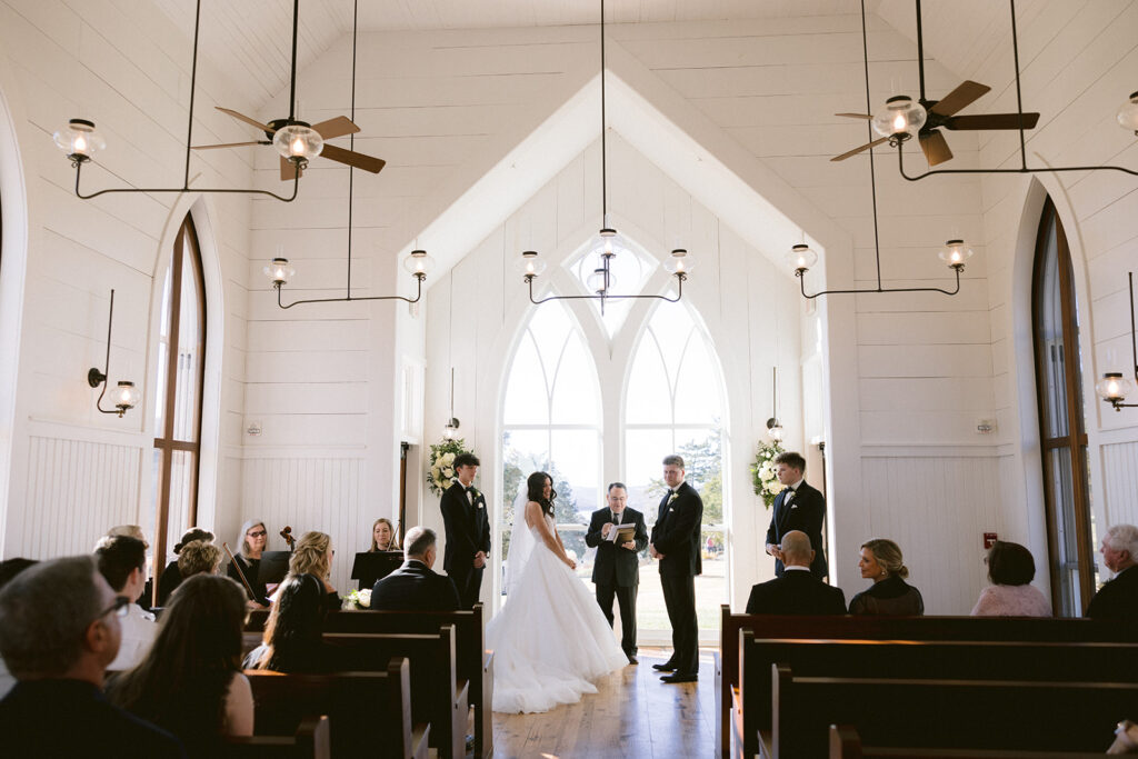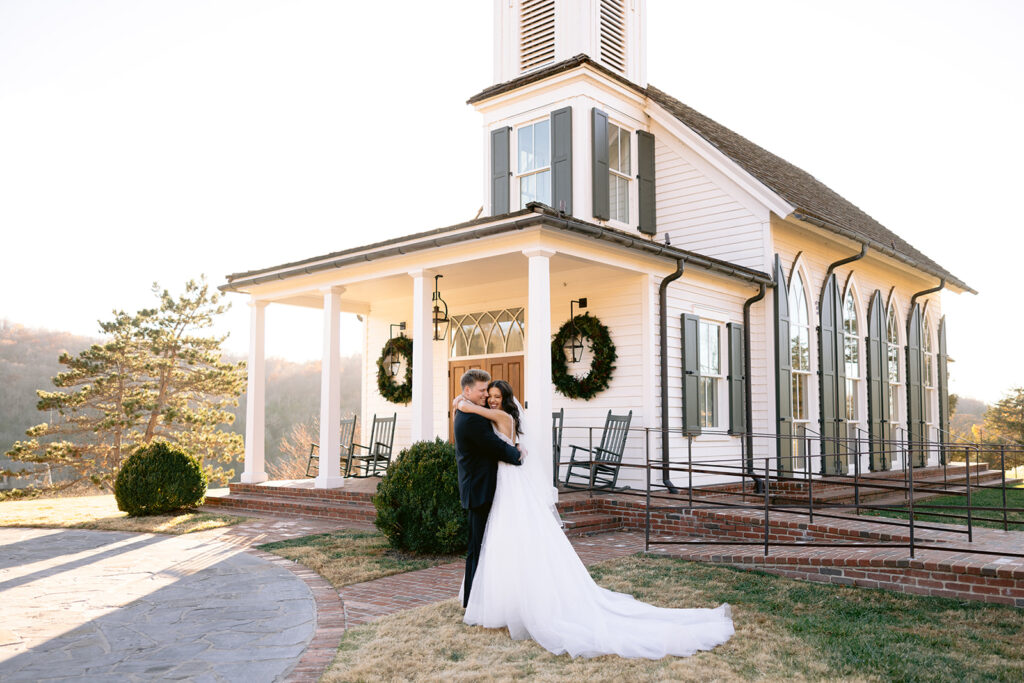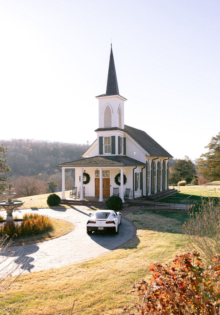 Nestled in the breathtaking Ozark Mountains, Jack and Grace chose to say their vows at the iconic Garden Chapel at Big Cedar Lodge – a venue known for its serene beauty and timeless charm. Surrounded by lush greenery and sweeping views, the chapel created peaceful, sacred atmosphere that perfectly reflected the heart of their wedding day – intentional, romantic, and deeply meaningful.