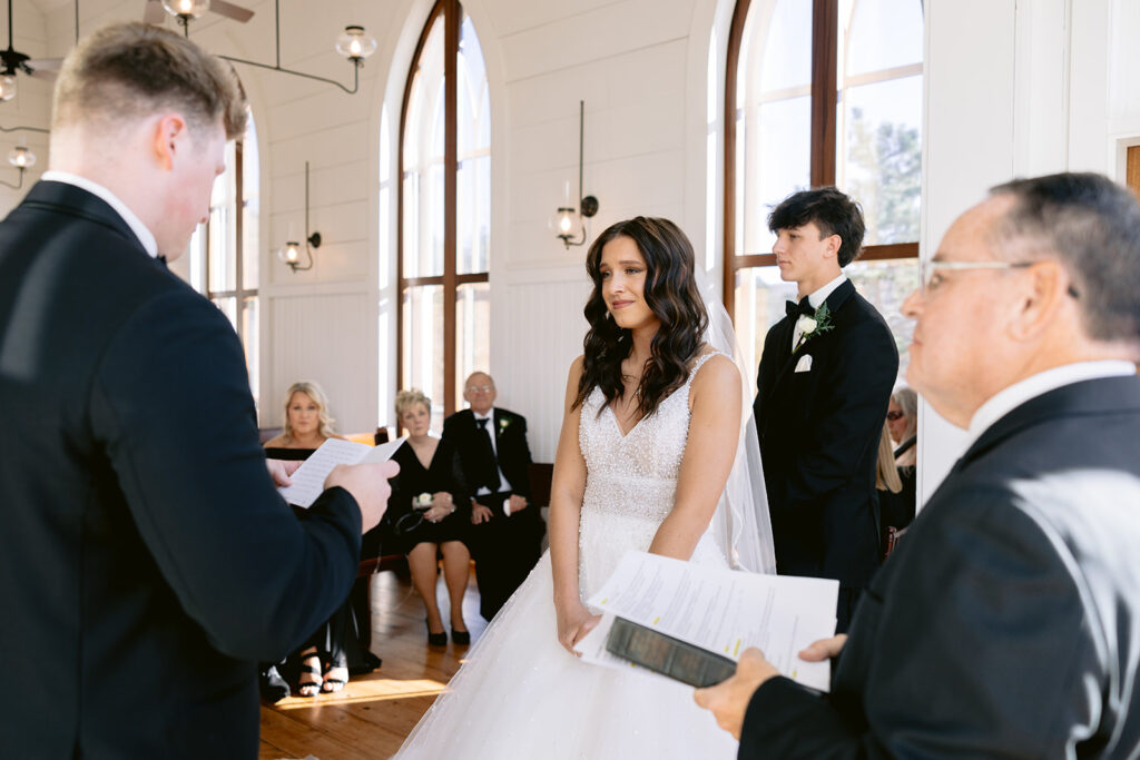 Their first moments together were filled with deep emotion, yet wrapped in peace. When Jack saw Grace, his expression softened with awe and tenderness. In Grace’s eyes was calm assurance – a love rooted in faith and unwavering commitment. It felt as though time slowed, allowing them to fully embrace the significance of the promises they were about to make. These quiet, heartfelt moments set the tone for the rest of their day – sincere, intentional, and profoundly meaningful.