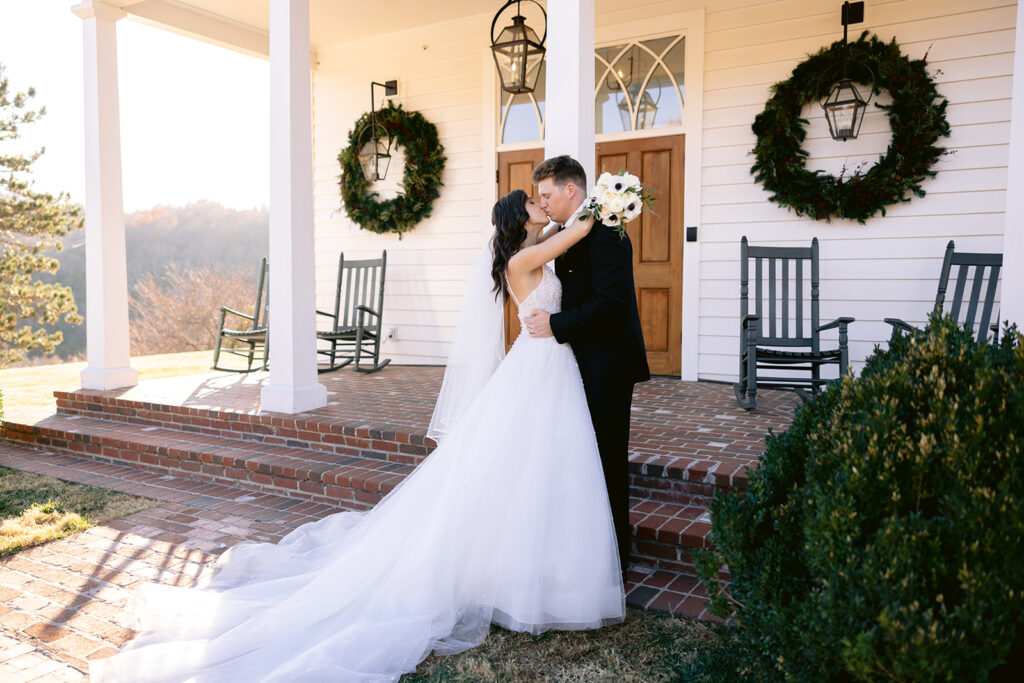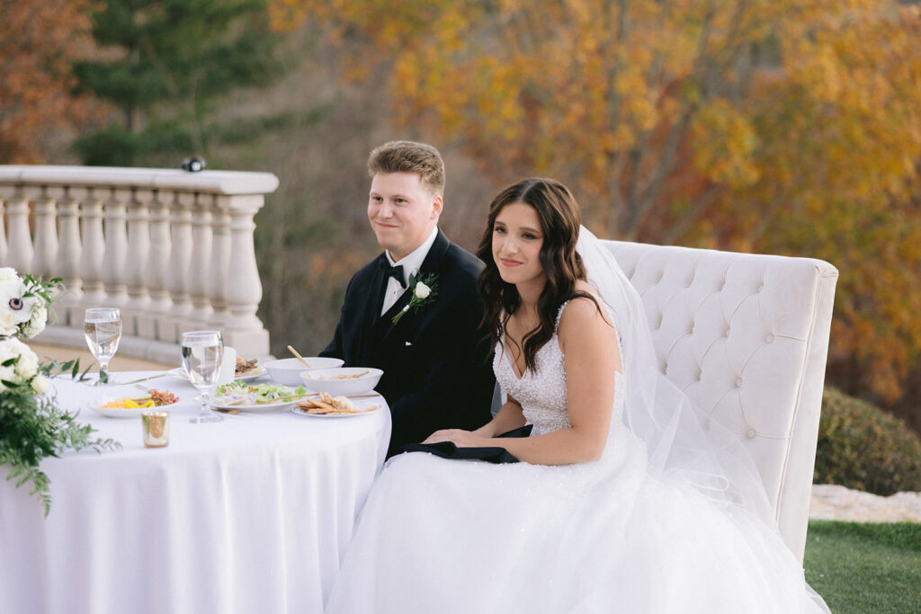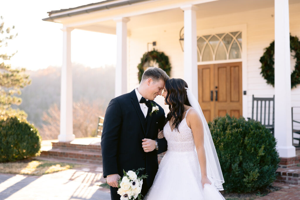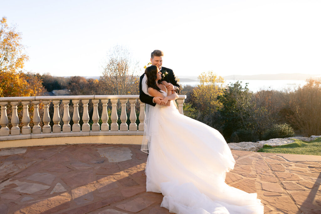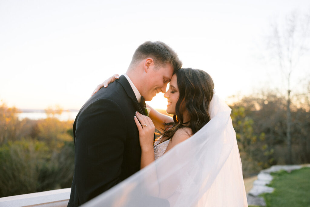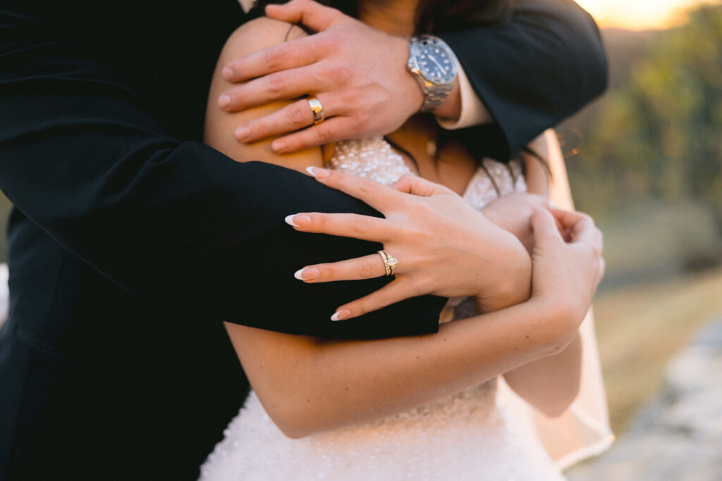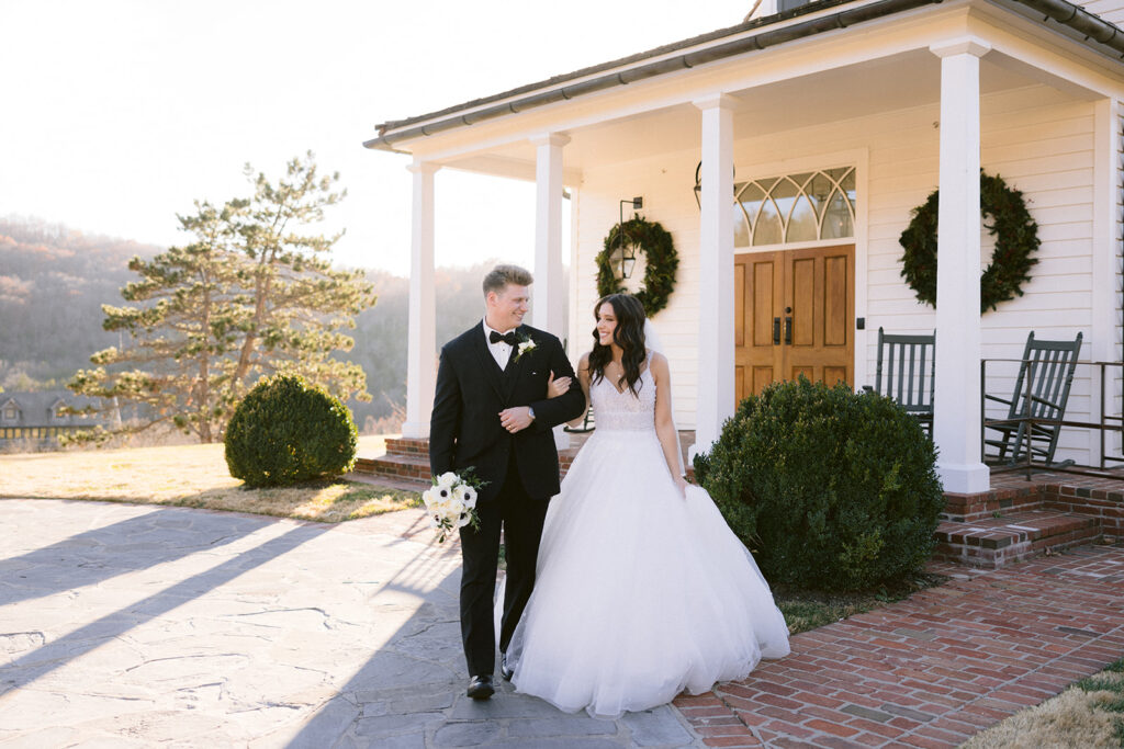 Following the ceremony, the surrounding landscapes of the Ozark’s provided a stunning backdrop for portraits. Soft light filtered through the trees, wrapping around them in a way that felt both cinematic and organic. Their images reflected a perfect blend of editorial elegance and authentic joy – refined yet genuine, timeless yet full of life. Each frame captured not only how the day looked, but how it felt: peaceful, romantic, and deeply sincere. The quiet in-between moments. spontaneous laughter, and gentle gestures revealed the depth of their connection.