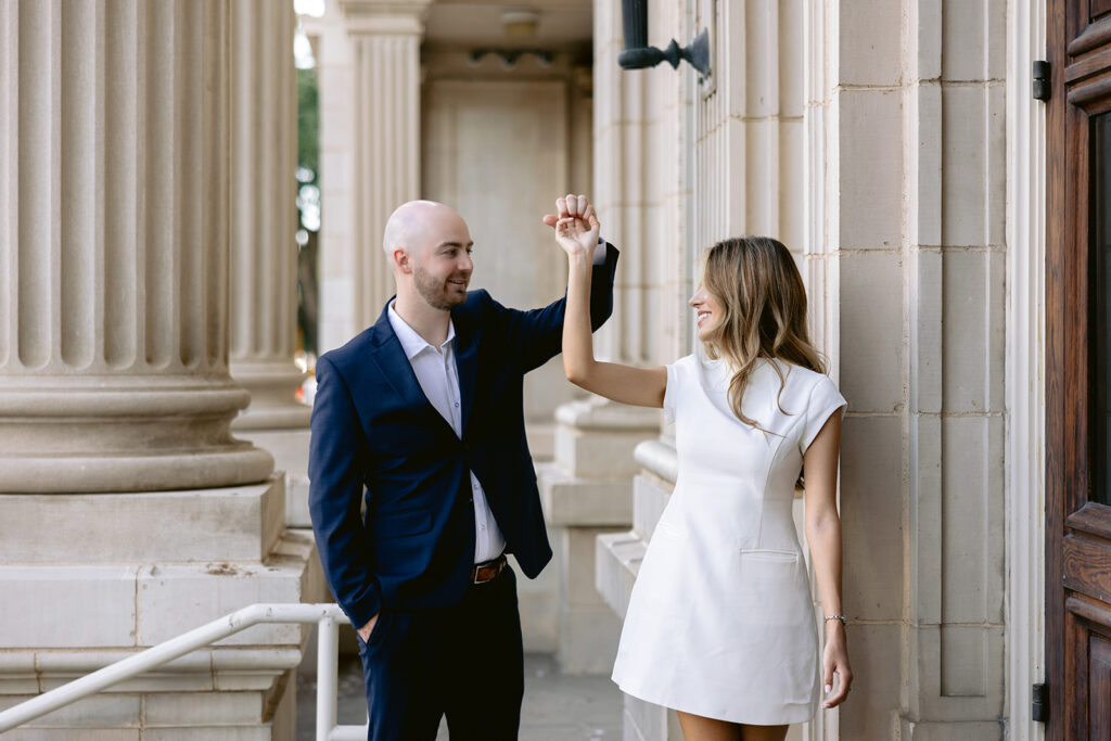Yahaira arrived in a stunning outfit that perfectly embodied a classy, modern aesthetic, while Carter complemented her look with a polished and tailored style. Their wardrobe choices elevated the entire session, creating a cohesive and luxurious feel that matched their personalities so well. The soft neutral tones and clean silhouettes allowed their love to remain the true focus of every image. As we moved through the session, I guided them with gentle direction while also allowing space for natural interaction. The result was a beautiful balance of posed elegance and candid emotion – smiles, quiet laughter, and those subtile glances that speak louder than words.