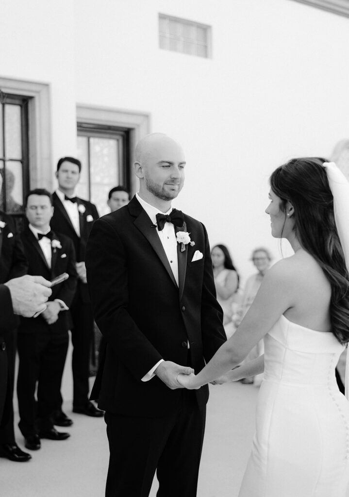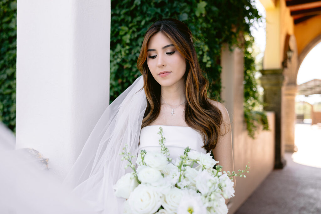 Yahaira and Carter’s wedding was the perfect reflection of the venue itself: refined, romantic, and effortlessly elegant. Their celebration embraced the natural architecture of the villa rather than overpowering it, allowing every space to breathe and shine. Soft neutral florals, candlelight, and classic details complemented the warm tones of the Spanish-style walls and courtyards. the result felt editorial yet deeply emotional – a wedding that looked and belonged in the pages of a European bridal magazine while still feeling deeply personal and intimate. As a North Texas wedding photographer, I am always drawn to venues that naturally enhance storytelling. Stoney Ridge Villas offers layered backdrops at every turn – winding staircases, sunlit balconies, and textured archways that photograph beautifully in both editorial and documentary moments.